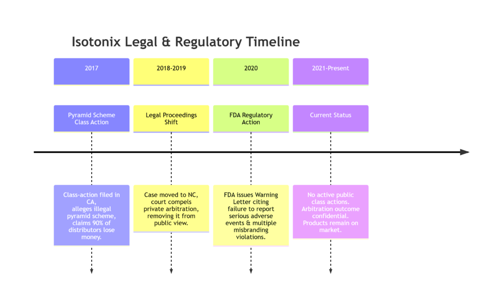 The legal story of Isotonix is not a single event but a series of regulatory and legal challenges over the past decade.